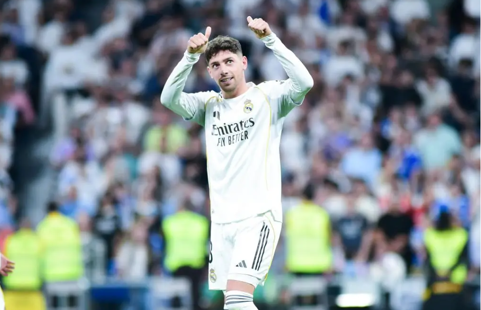 4月10日,皇家马德里队球员巴尔韦德庆祝进球。新华社发(古斯塔沃·巴连特摄)
